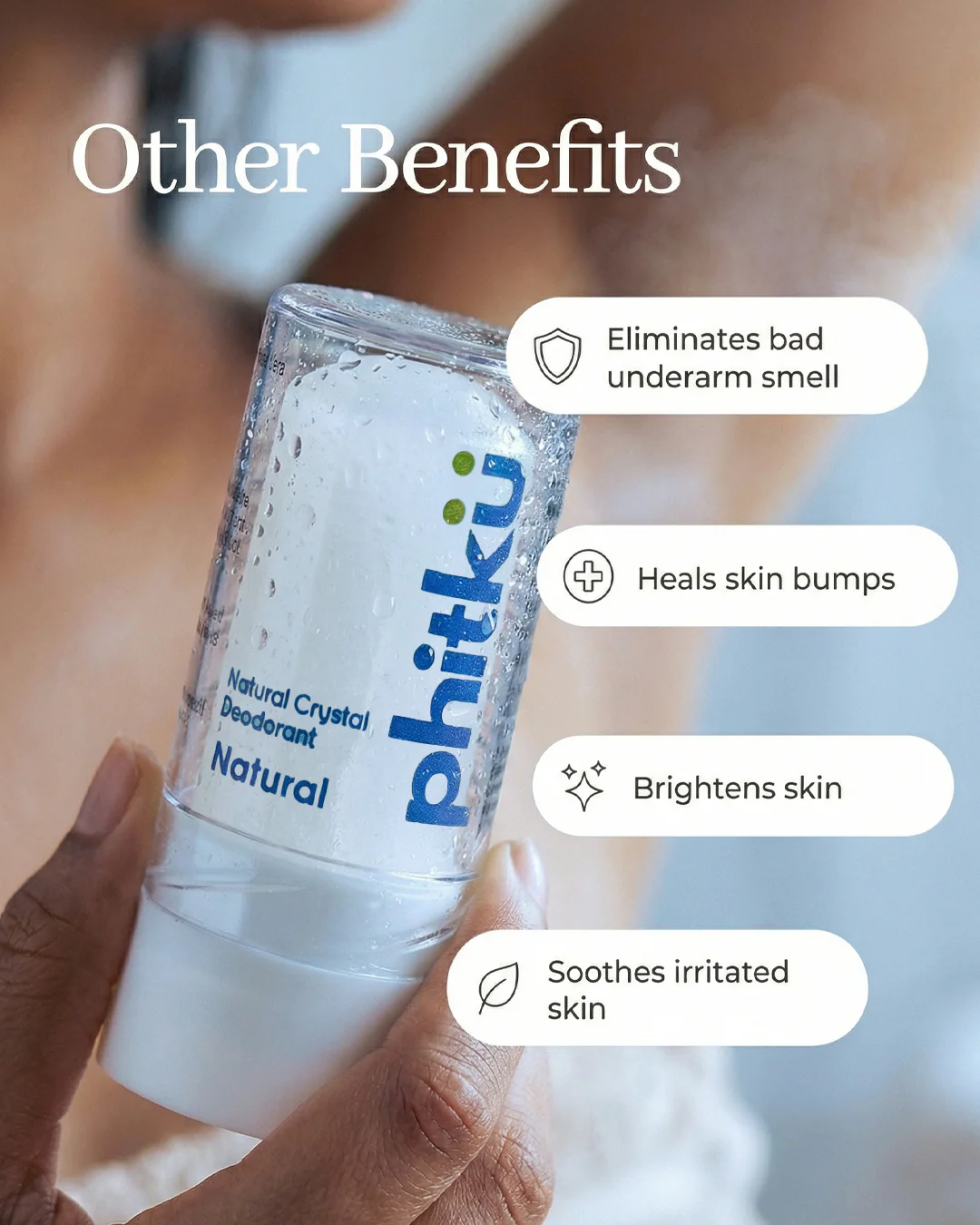 Crafted with pure potassium alum, a naturally occurring mineral, this roll-on delivers unmatched freshness while caring for your skin. Known for its antibacterial and astringent properties, alum fights odor-causing bacteria without clogging pores, giving you long-lasting protection.
